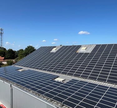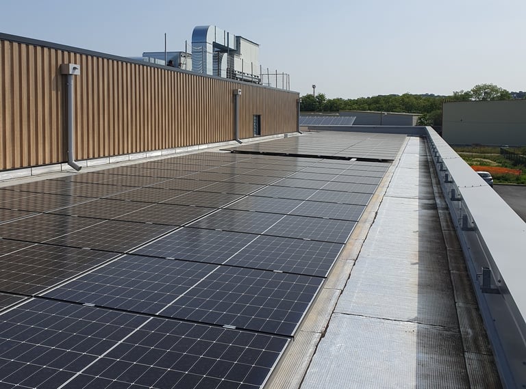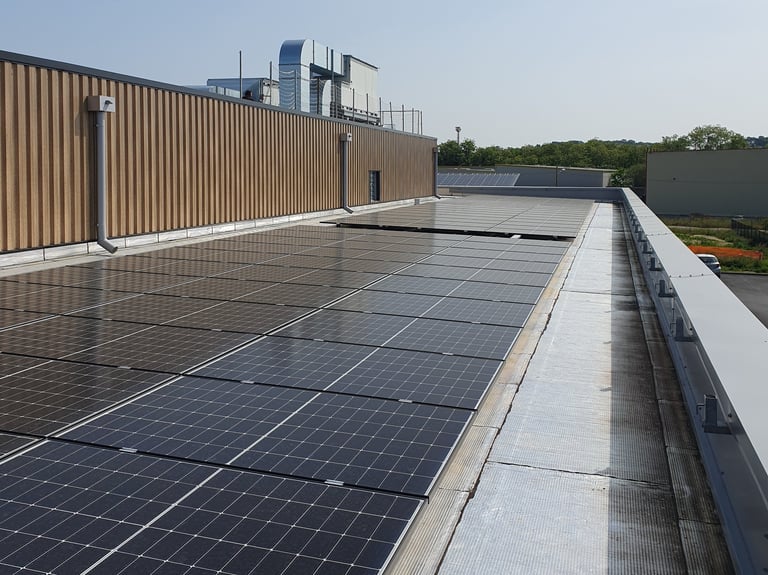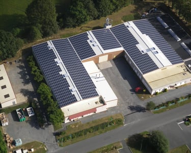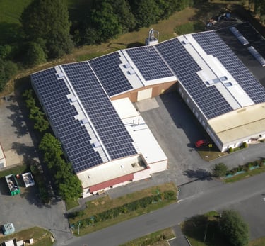 Installation en toiture d’une capacité proche du demi MW raccordé en haute tension au réseau.