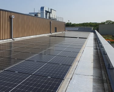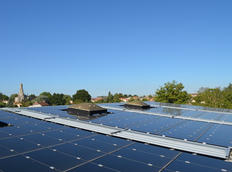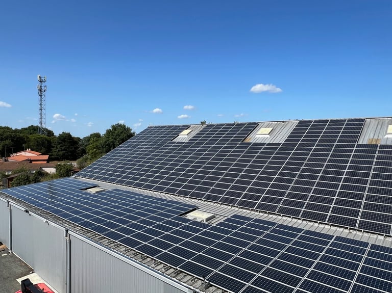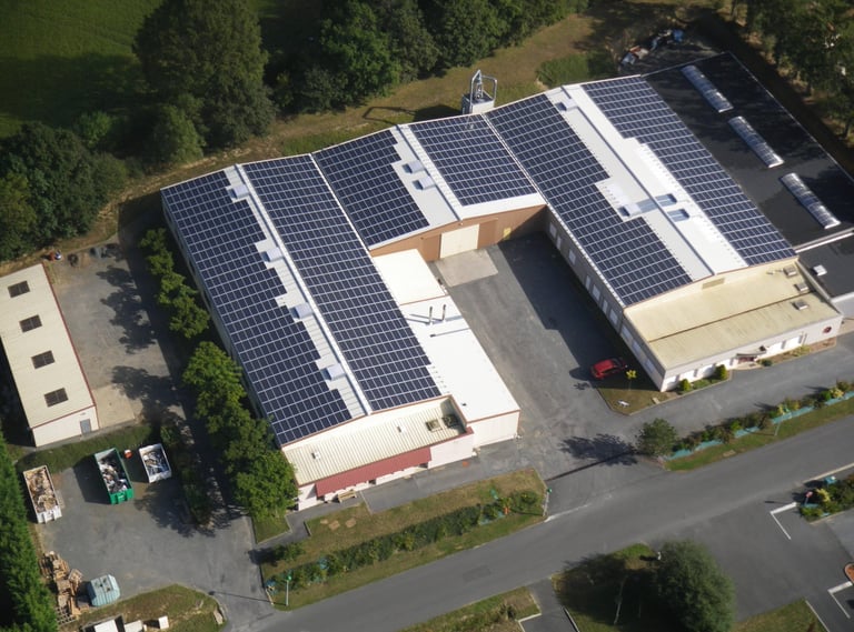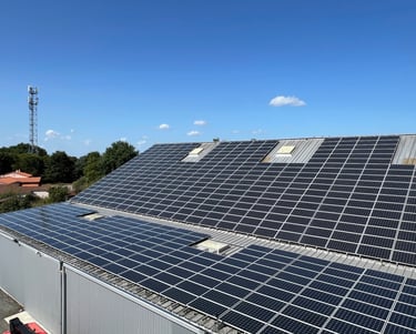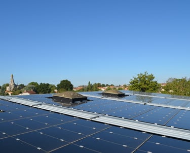Dans le cadre des nouvelles réglementations d'urbanisme, les nouvelles construction doivent être équipées d'un minimum de modules photovoltaïques. Las Charcuterie Cosme nous a fait confiance pour concevoir, installer et opérer une centrale photovoltaïque permettant de produire de l'électricité localement sans les détourner de leur cœur de métier.