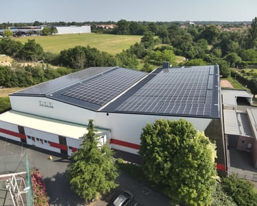 Installation photovoltaïque installée sur la toiture d’une salle de sport. Premier projet photovoltaïque de David Energies démarré dès 2008 et l’un des tous premiers dans la région.