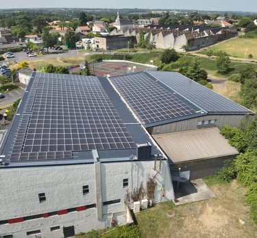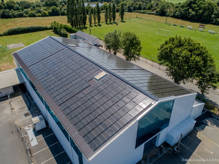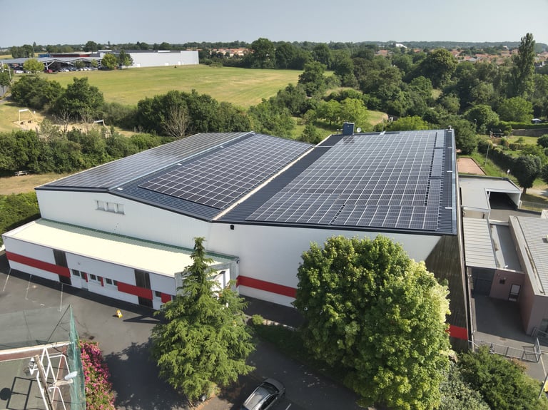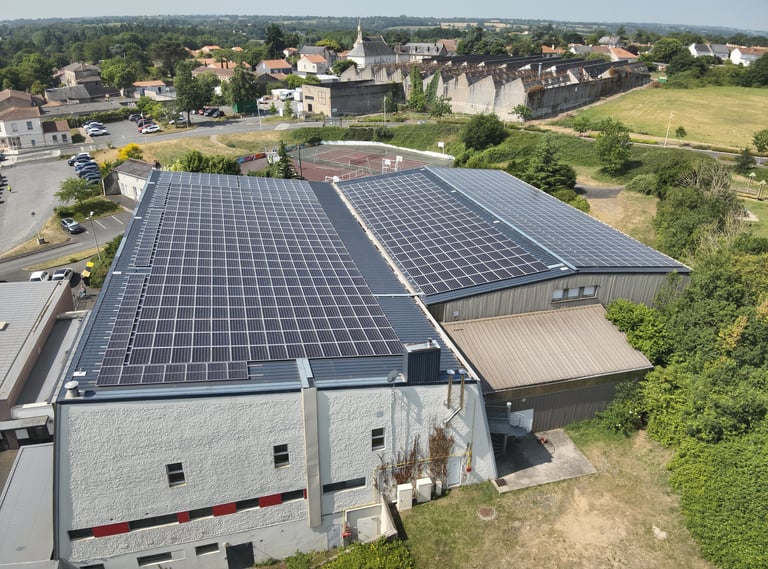 Suite à la réussite du projet sur la salle de sport de la Tourlandry, la salle de sport de la commune voisine s'est également pourvue d'une centrale photovoltaïque au moment de la rénovation de sa toiture.